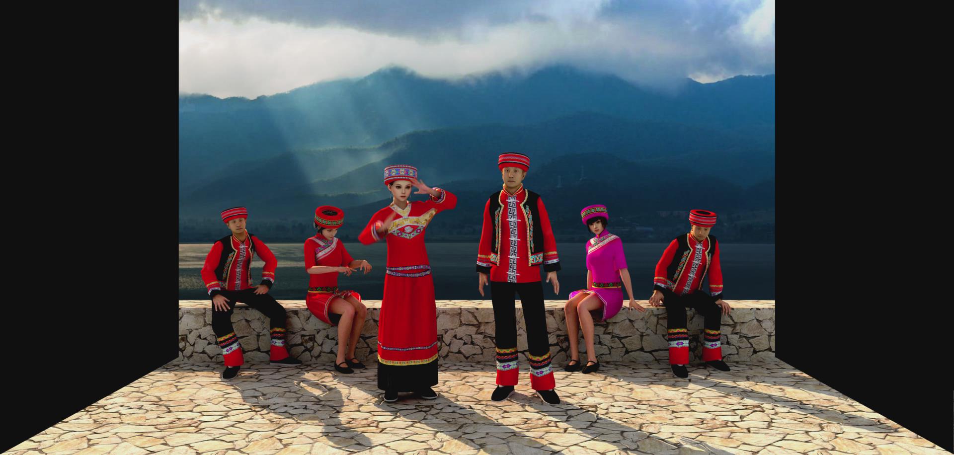 彝族民歌是彝族文化的一個(gè)重要載體,它記錄彝民族的歷史、科學(xué)、生產(chǎn)生活、傳統(tǒng)習(xí)俗、哲理、等豐富多彩的彝族文化。彝族民間有各式各樣的傳統(tǒng)曲調(diào),諸如爬山調(diào)、進(jìn)門調(diào)、迎客調(diào)、吃酒調(diào)、娶親調(diào)、哭喪調(diào)等。通過(guò)三維動(dòng)畫展示彝族文化的形式,畫面立體感很強(qiáng),非常吸引人。