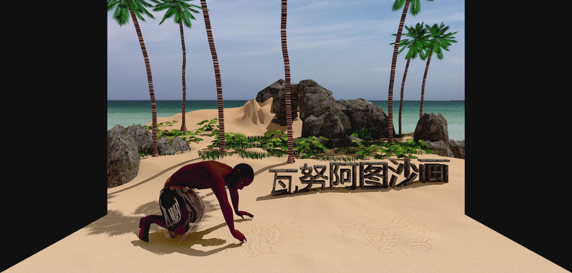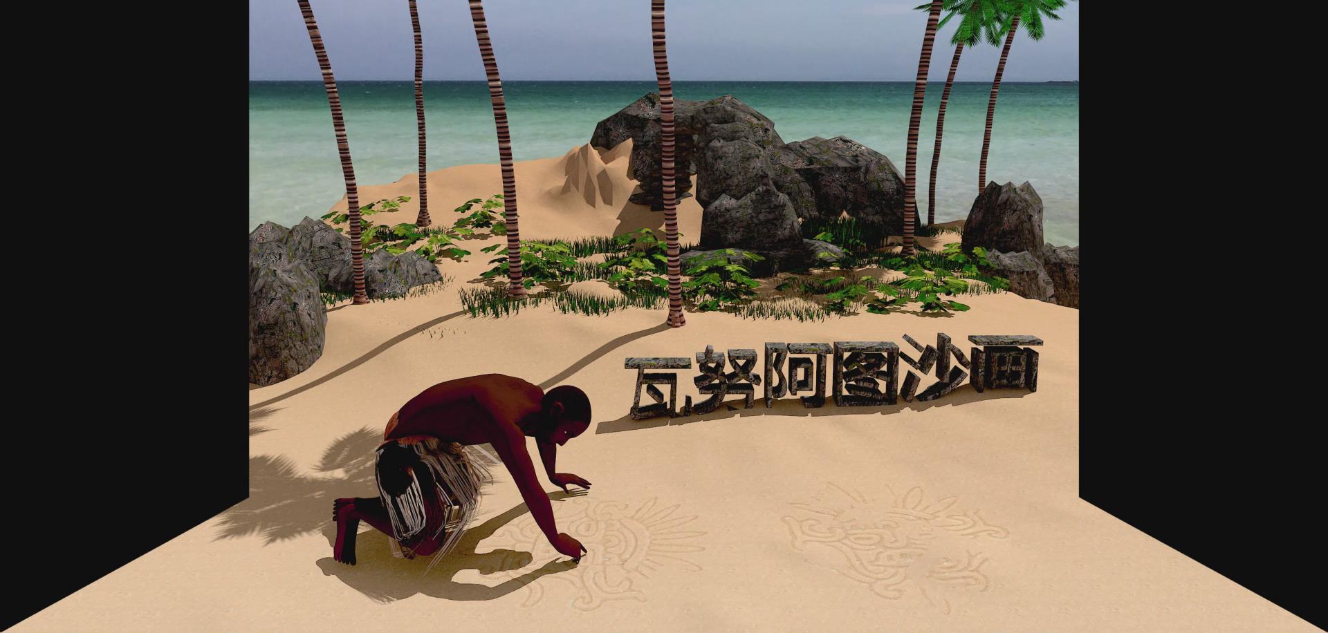 沙畫是瓦努阿圖土著人祖祖輩輩傳下來的“絕活”,較之世界其它地區(qū)的沙畫藝高一籌。所謂沙畫,就是在露天的沙地(沙灘)、撒滿火山灰或泥土的地面上,用一只手指直接勾畫出的各種圖形。通過三維立體動畫展示了瓦努阿圖沙畫的制作過程,體現(xiàn)了瓦努阿圖古老的藝術特點。